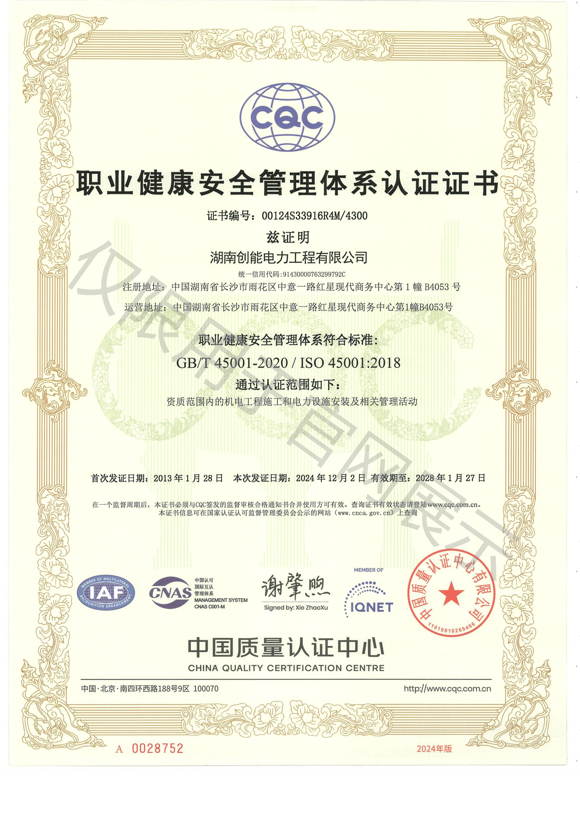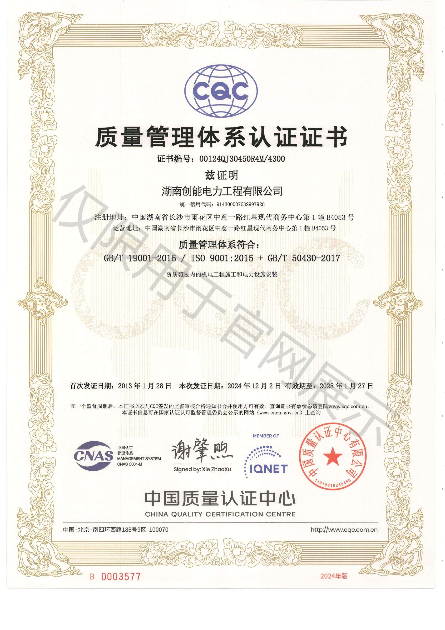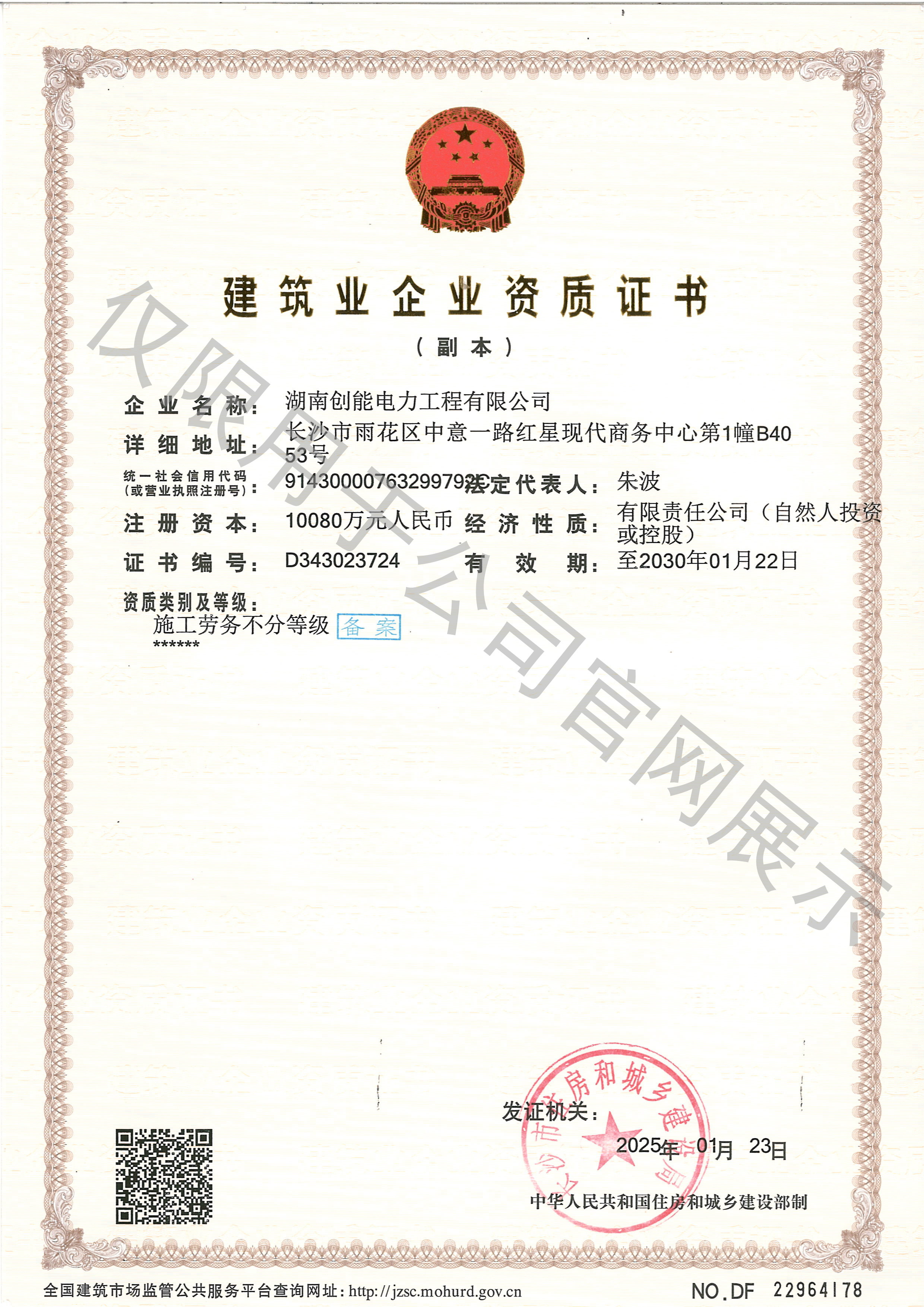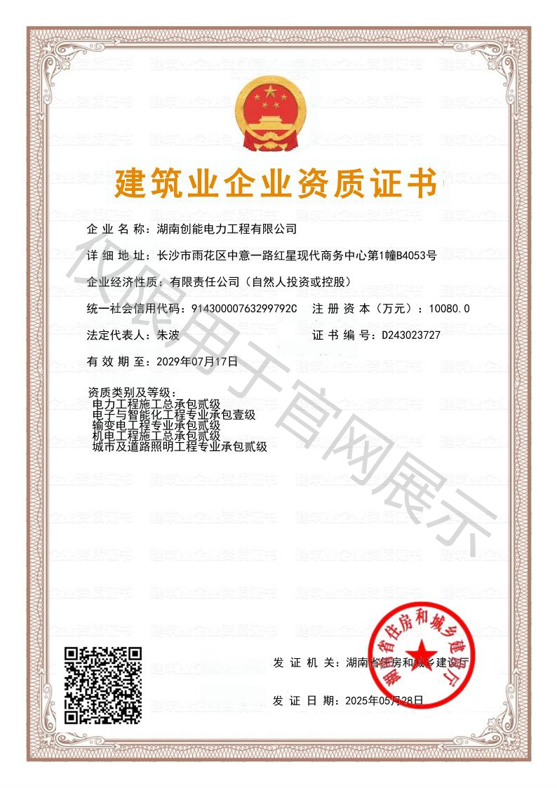 施工總承包電力工程貳級、施工總承包機電工程貳級、專業承包輸變電工程貳級